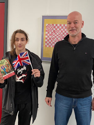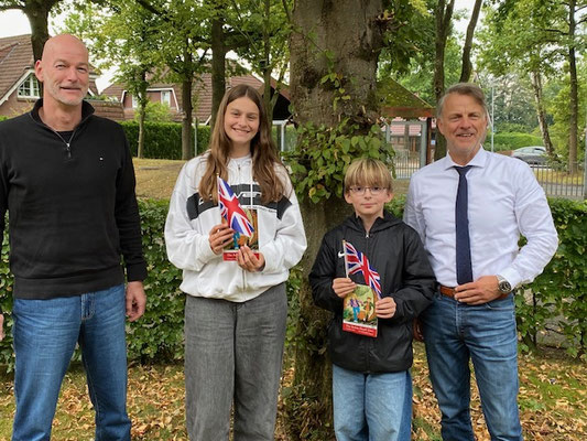 Teilnehmenden erhielten nun Julia und Emily vom Englischlehrer David Knur und Jens Husmann, unserem 1. Konrektor, ihre Preise.